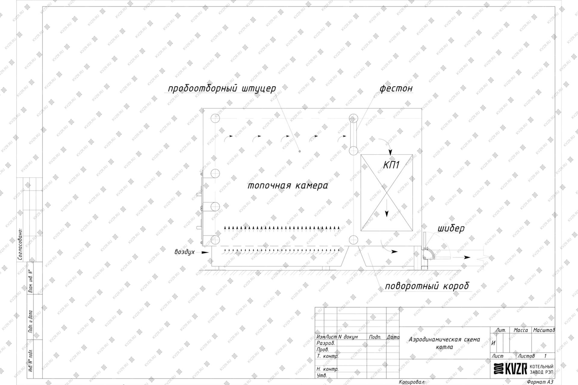 Воздух в водогрейный котла на дровах 200 кВт на дровах подается вентилятором поддува через топочный короб под слой древесного топлива для обеспечения горения. На боковой панели топки котла имеется пробоотборочный штуцер для подключения манометра и тягонапорометра.