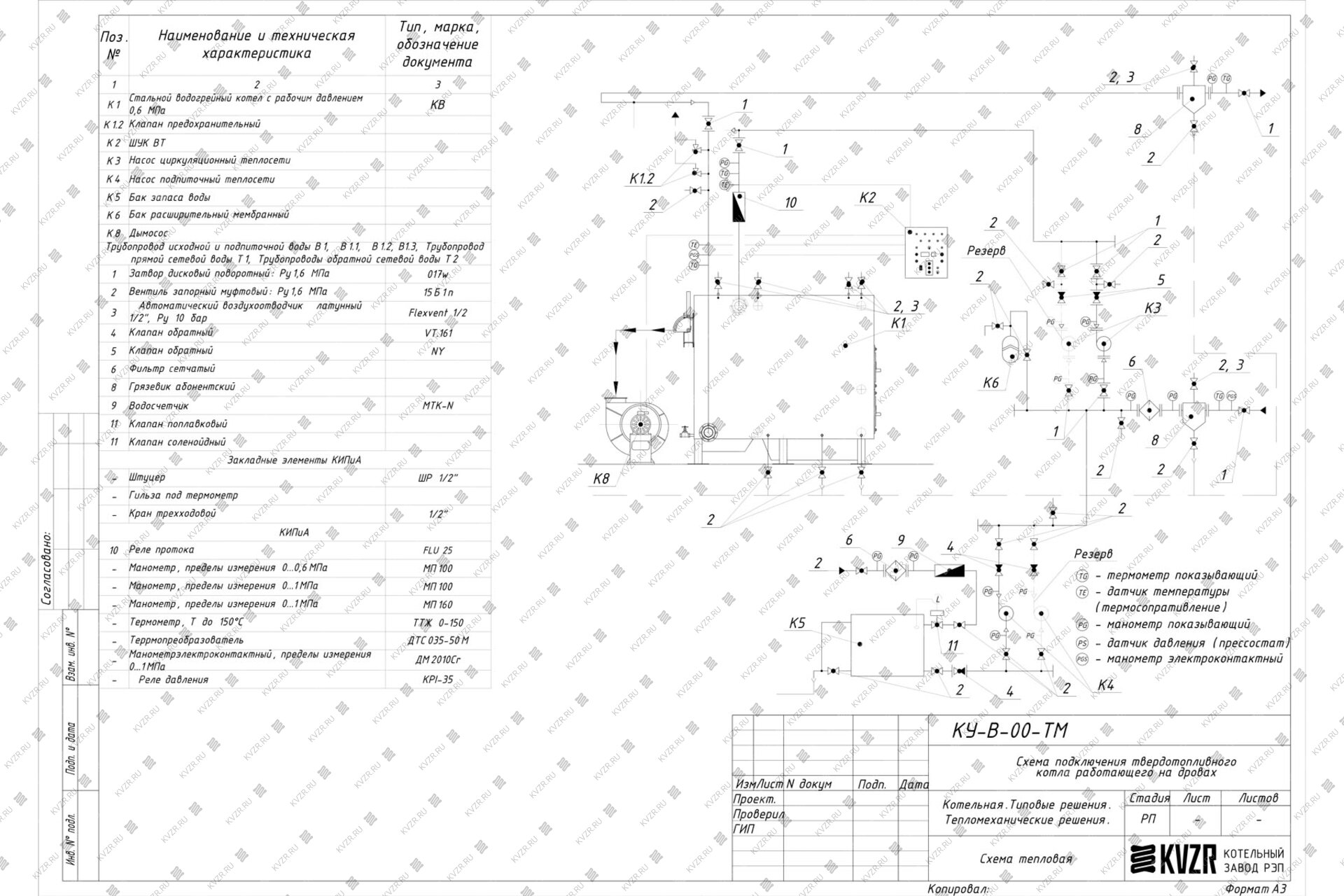 По запросу поставляется комплект обязательной арматуры, КИП и ДВ: затворы дисковые - 2 шт., запорные вентили - комплект, предохранительный клапан, термометры с оправой - 2 шт., манометры с кранами - 2 шт. Котлоагрегат работает без вентилятора.