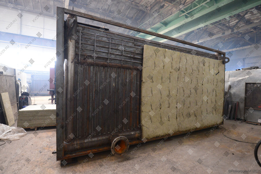 Конструкция российских отопительных котлов КВГ - стальные, водотрубные, прямоточные, газоплотные, состоящие из топки, трубной конвективной части и обмуровки.