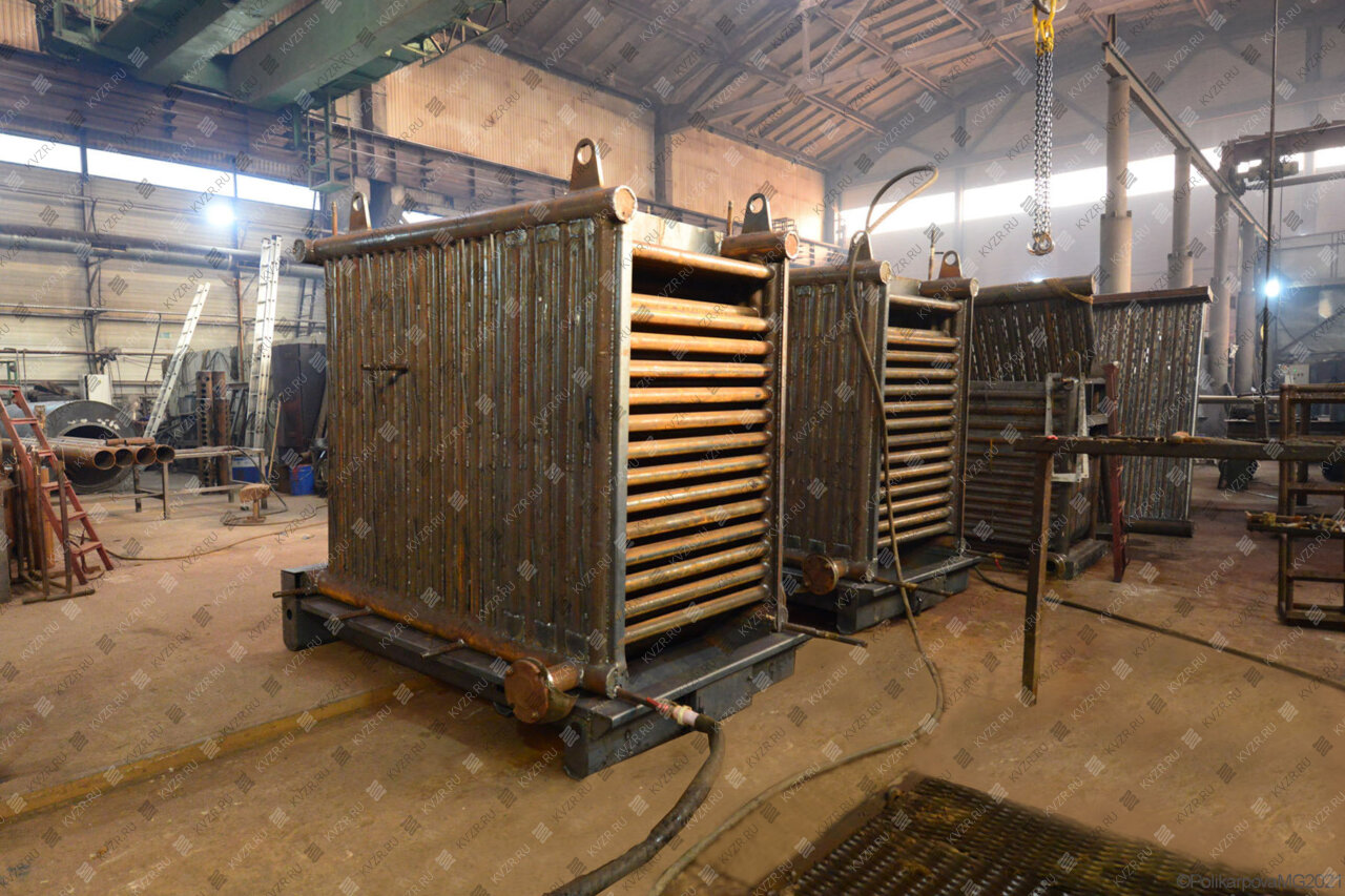 Все водогрейные котлы 1250 кВт нашего производства - стальные, горизонтальные, водотрубные, прямоточные и компактные. Трубная часть котельного блока выполняется из труб различных диаметров, материал труб сталь 10 и 20. Блок снаружи обваривается стальной охлаждаемой полосой, поэтому в наших котлах исключена возможность задымления котельного зала. Снаружи на каркас из профильной трубы и швеллера крепится утеплитель и декоративная обшивка из полимерного листа. В обшивке предусмотрены лючки для очистки поверхностей нагрева.