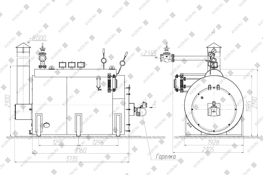 Автоматика котлов паровых КПа по заданному давлению производит управление горелочным устройством и, следовательно, интенсивностью горения.